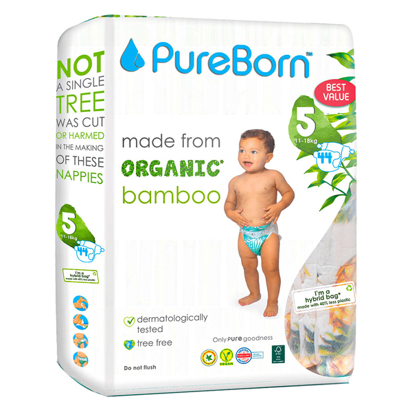 PureBorn Size 5 Eco Organic NewBorn Nappies - (11-18 kg) - Drops
