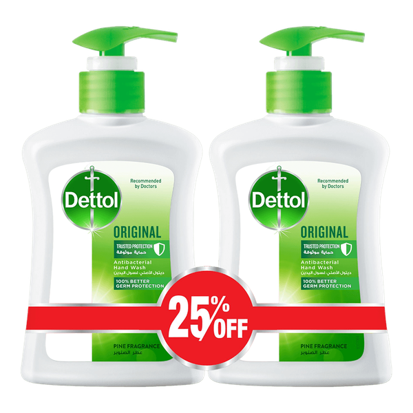 Dettol Original handwash gives you 100% better germ protection. It combines Dettol’s trusted germ protection with pine fragrance to protect your hands and keep them moisturized and soft. Dettol handwash liquid maintains the pH of your skin - 2 x 200 ml