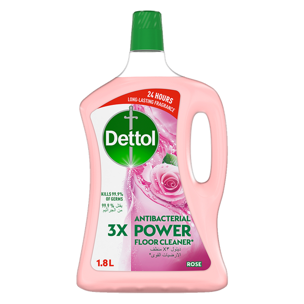 Dettol Antibacterial Power Floor Cleaner has 3 times cleaner power that removes 100 types of tough stains, kills 99.9% of illness-causing germs and disinfects your floors. It imparts an amazing and 24 hours of long-lasting rose fragrance - 1.8 L