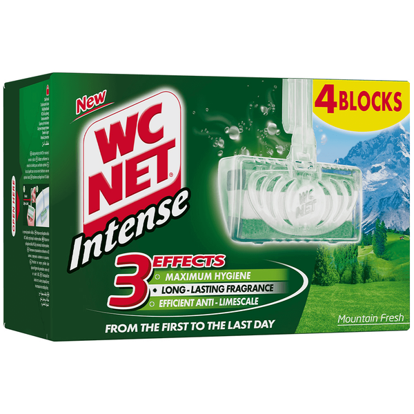 WC Net rim blocks is a perfumed toilet cleaner that removes odors, long lasting smell, and deep cleans and hygienists the toilet bowl - 4 Blocks x 34 gm