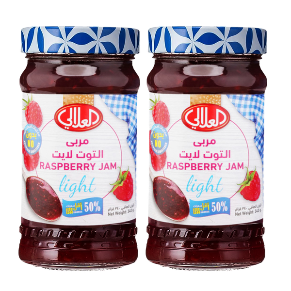 Raspberry flavored jam with 50% less sugar and calories that can be added on toast, muffins, in a recipe or as part of a sauce - 2 × 340 gm