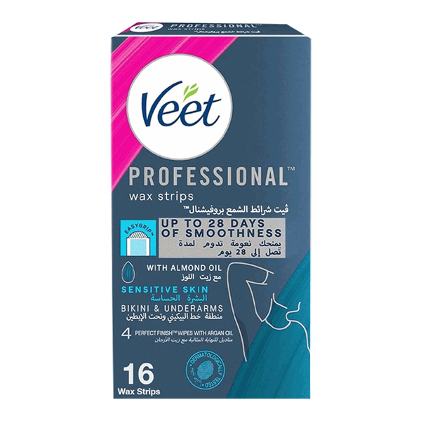 Veet Easy-Gel™ Hair Removal Strips’ Easy-Gel™ formula flows around and actively grips the shortest hairs*, not the skin. These are specially designed for areas like bikini line and underarms with naturally derived Shea Butter fragranced with acai berries - 16 Pcs