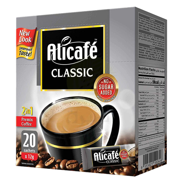 Alicafé Classic 2 in 1 offers you a Sugar Free smooth classic coffee with its distinctive taste and rich aroma so that you can enjoy every sip without the guilt - 20 x 12 gm