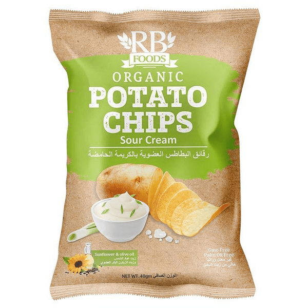Enjoy the organic sour cream crispy potato chips from RB Foods, prepared with sunflower oil and organic olive oil, Non-GMO and palm oil free - 40 gm