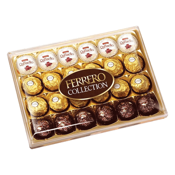 Set Includes: Ferrero Rocher Fine Hazelnut Milk Chocolates (12 Pcs) - Raffaello Coconut & Almond White Chocolate (6 Pcs) - Rondnoir Dark Chocolate (6 Pcs)