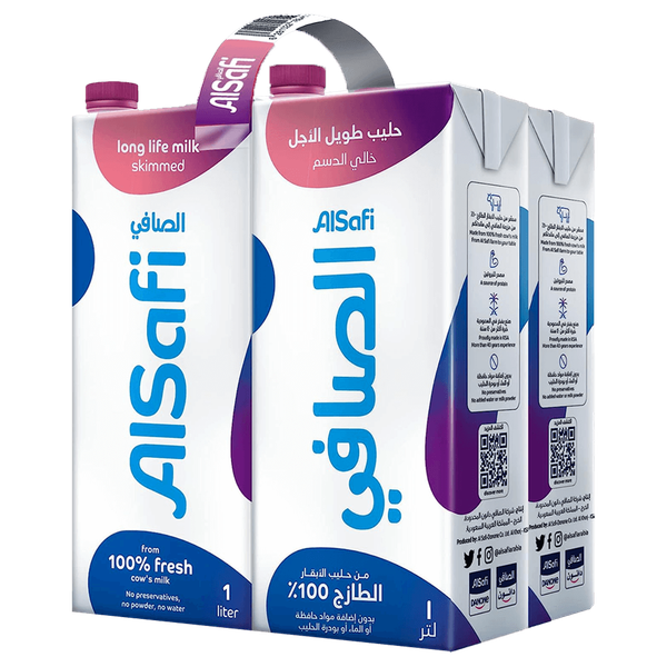 AlSafi Skimmed Long Life Milk is rich in protein and calcium which help build the muscles and the bones - 4 x 1 L