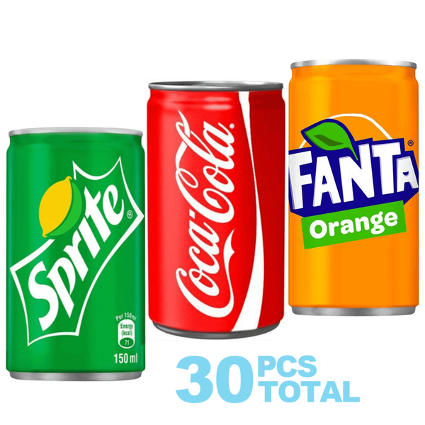 Set Includes: Fanta Orange (10 x 150 ml) - Coca-Cola (10 x 150 ml) - Sprite (10 x 150 ml)