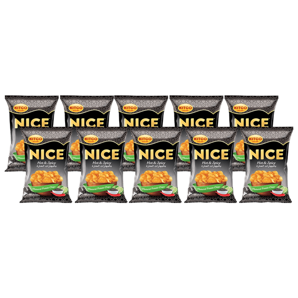 Kitco Nice Hot & Spicy Chips are made of the finest hand picked potatoes, fresh ingredients and lots of tasty flavors for everyone to enjoy. Delicious and nutritious snack - 10 x 45 gm