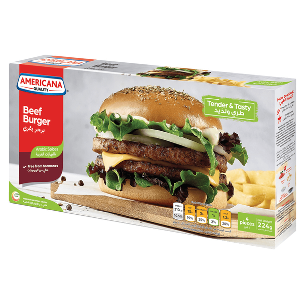 High-quality products mixed with spices to create tasty beef burger. These burgers are soft, tender and ideal for quick and easy meals or for barbecue - 224 gm