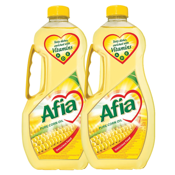 Afia Corn oil is produced to the highest quality and is ideal for the preparation of healthy food. It is rich in nutrients and antioxidants, which cut down on bad cholesterol - 2 x 1.5 L