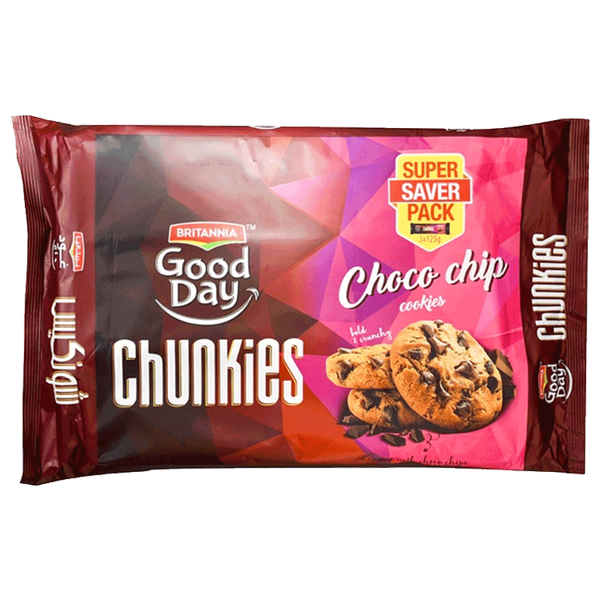 Britannia Goodday Chunkies has the perfect balance of dark and milk chocolate chips in the cookie. It gives you an unparalleled, melt in mouth chocolate experience - 375 gm