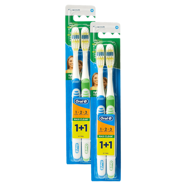 Oral-B toothbrush bristles move in multiple directions to gently clean teeth and massage gums to help remove plaque and bacteria, and it comes with a variety of brush heads, and settings to accommodate individual needs and preferences - 2 x 2 Toothbrushes