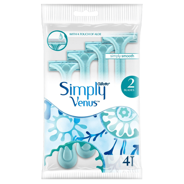 They have two blades and a moisturizing strip with aloe vera and vitamin E to soothe and protect the skin while shaving. The razor also has a pivoting head that adjusts to the body's curves and contours for a comfortable shave - 4 Razors