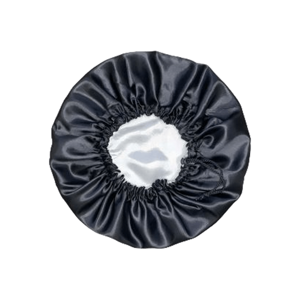 Hair Essentials Premium Satin Kids Bonnet - Black/Silver - Drops