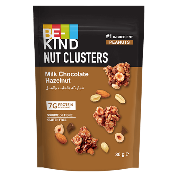 Clusters of almonds, peanuts, and hazelnuts with milk chocolate. A source of fibre. Gluten Free, and contains 7 grams of protein. No artificial colors or flavors - 80 gm