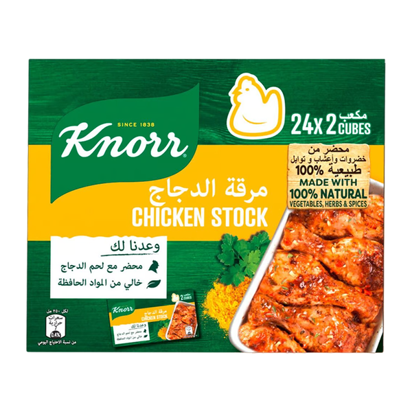 These cubes are concentrated with chicken flavor, ideal for enhancing soups, stews, and sauces with a rich poultry taste - 24 x 20 gm