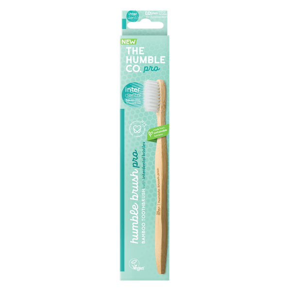 Designed for thorough cleaning, including interdental spaces, this toothbrush features specialized bristles and a sustainable bamboo handle.