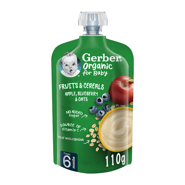 A nutritious and delicious baby food made from a mix of organic apple, blueberry, and oats to help introduce your little one to the goodness of fruits and vegetables from 6 months - 110 gm