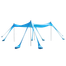 The beach canopy is perfect for beating Kuwait's heat! It measures 3 x 3 meters in width and depth, with a height of 2 meters. It includes 8 sandbags for stability against windy conditions. The cloth is made from 12% lycra and 88% terylene, and the poles are made of aluminum, ensuring great durability. It comes in a sky blue color.