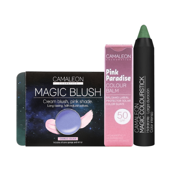 Set of 3: Magic Blush (Blue/Pale Pink), Pink Paradise Lip Balm SPF 50, Magic Colourstick (Green)