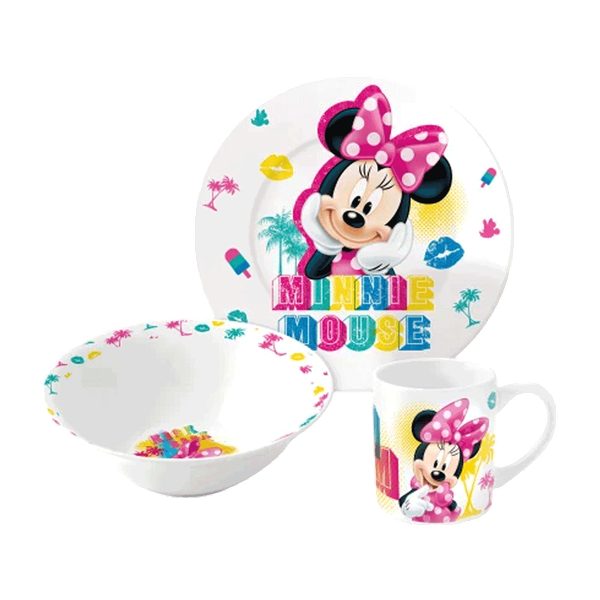 The set contains a rimmed plate, a cone bowl, and a mug. A perfect size for small hands and covered with colorful artwork, letting kids dine with their favorite characters-even picky eaters will be eager to eat with these plates - Set of 3