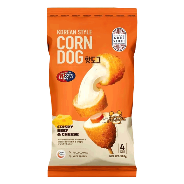 Made with a crispy, golden batter and filled with savory beef, this corndog provides a satisfying crunch and a flavorful, juicy interior. Perfect as a snack or quick meal, it's easy to prepare by simply heating it in an oven or air fryer - 320 gm