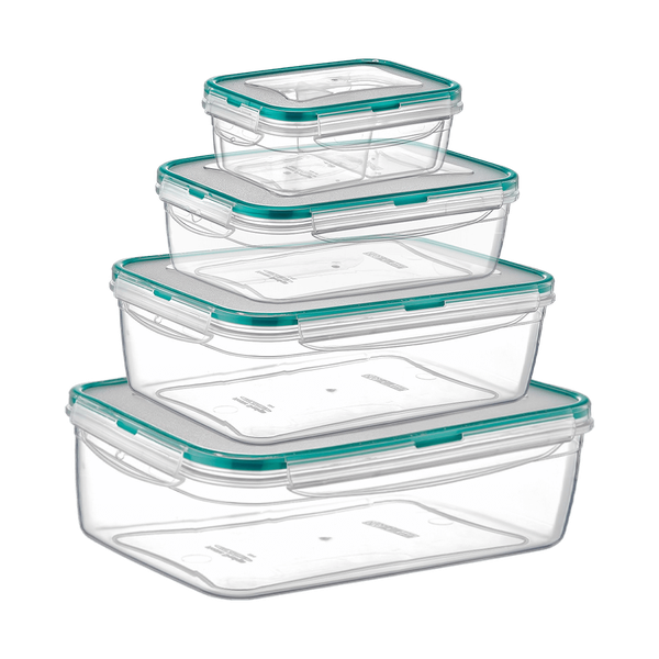 It feature an Air-Tight and Liquid-Tight seal lock system, ensuring maximum freshness and convenient storage. Please note, the cover should not be used in the microwave. These containers are also BPA-free for added safety. The set contains: 0.7 L (24 x 26 x 14 cm) + 1.3 L (24 x 26 x 14 cm) + 2.4 L (24 x 26 x 14 cm) + 4.5 L (24 x 26 x 14 cm) - Set of 4