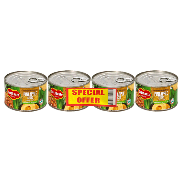 It features perfectly sliced, ripe pineapples preserved in a light syrup. These slices are ready to eat and can be used in desserts, salads, or as a topping for grilled dishes. The light syrup enhances the pineapple's natural sweetness, making it a versatile addition to various recipes - 4 x 235 gm