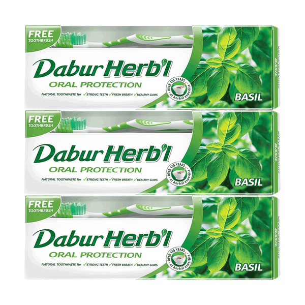 Provides complete oral protection with basil extract, known for its natural antibacterial and cleansing properties - 3 x 150 gm