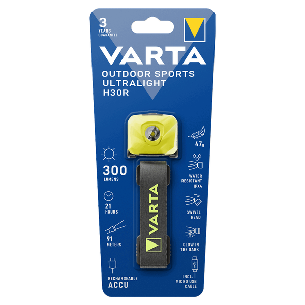 Lightweight LED headlamp H30R Lime by Varta Outdoor Sports designed for outdoor enthusiasts with a striking lime finish
