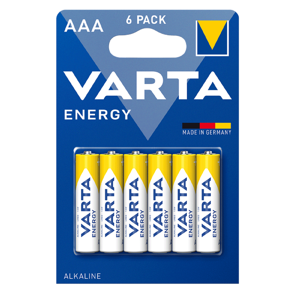 Bulk pack of AAA alkaline batteries from Varta Energy including 6 pieces ideal for frequent battery users - Made In Germany