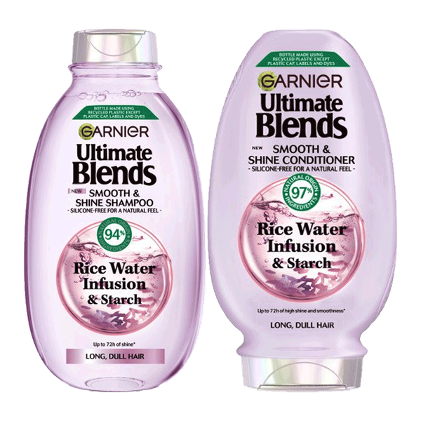 A complete haircare set combining rice water shampoo and conditioner to nourish soften and strengthen hair from root to tip - 400 ml + 360 ml