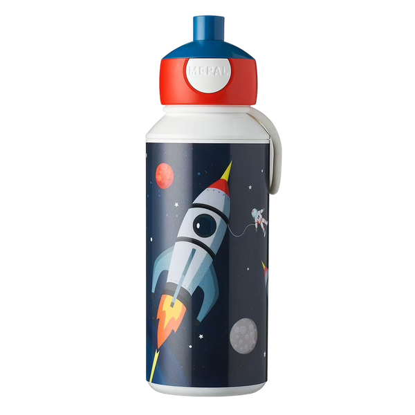 Space-themed kids bottle with secure flip-top lid and ergonomic grip offering easy drinking and fun space graphics - 400 ml