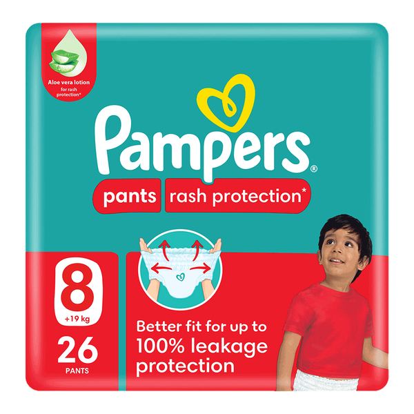 Pampers rash protection pants with extra large fit and overnight protection for heavy wetters - Size 8