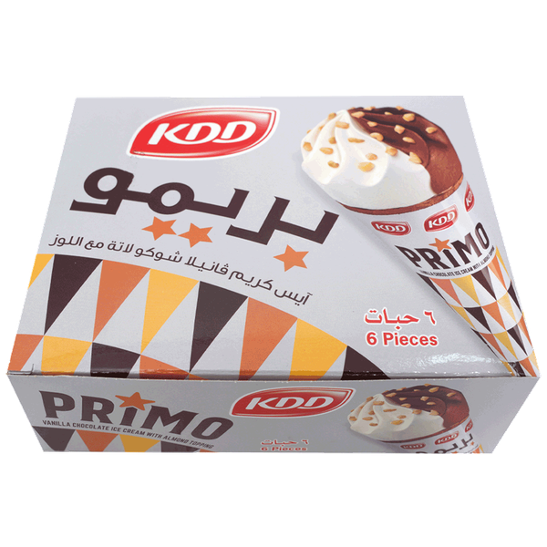 Ice cream cone with vanilla and chocolate swirls topped with almond pieces for a rich crunchy frozen dessert - 6 x 124 ml