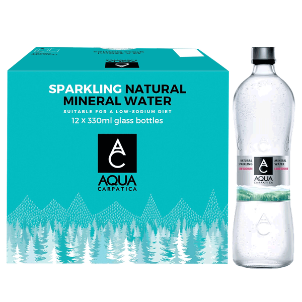 Sparkling mineral water in glass bottles with crisp bubbles and balanced natural minerals - 12 x 330 ml