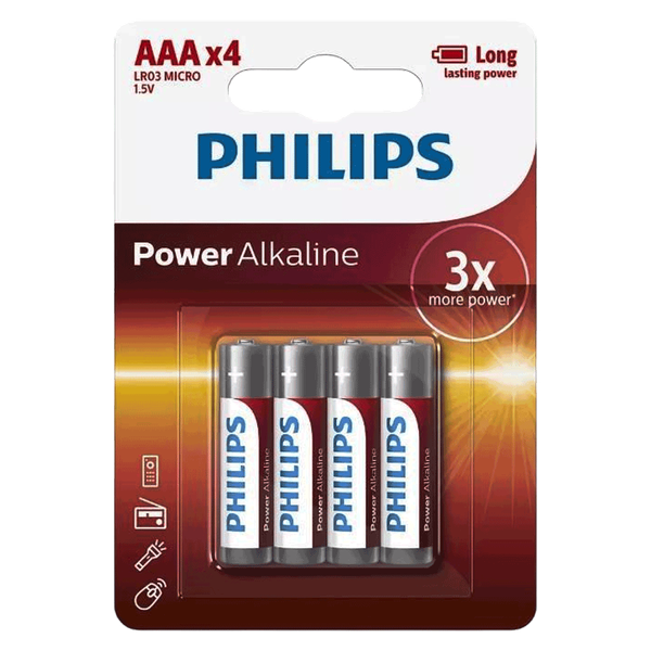 AAA alkaline batteries delivering steady 1.5V power for small electronics - LR03P4B/97
