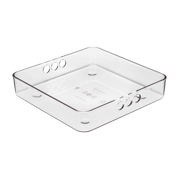 Durable transparent plastic tray compact for refrigerator and kitchen pantry storage - Set of 3 / 26.3(l) x26.3(w) x 5(h) cm