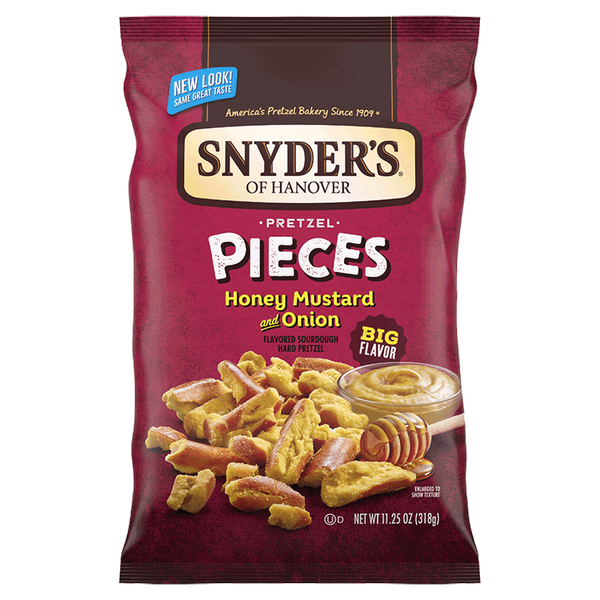 Crunchy pretzel pieces coated with honey mustard and onion seasoning - 318 gm