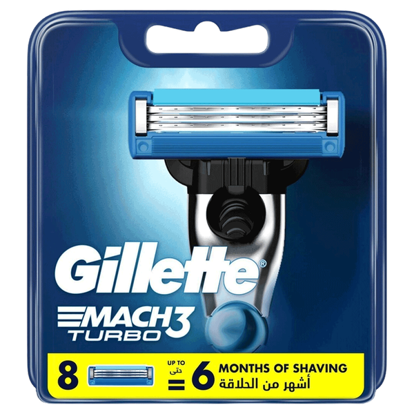 Advanced Mach3 Turbo refillable razor blades designed for enhanced comfort and extra smooth shaving. - 8 blade refills