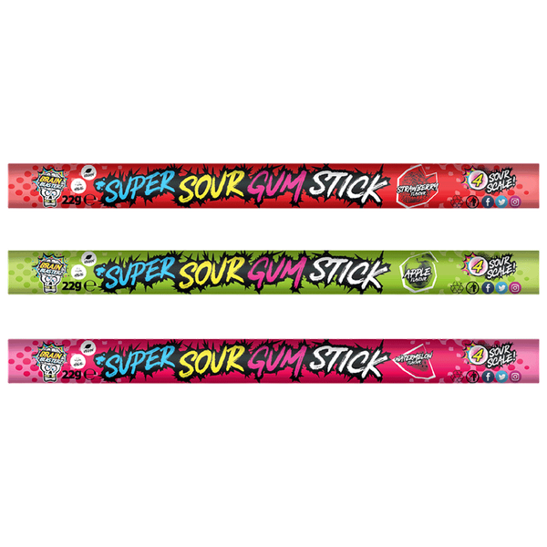 Tangy sour gum cords in assorted flavors for an intense candy kick - 22 gm