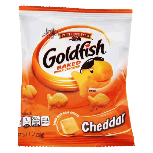 Baked cheddar-flavored crackers shaped like fun goldfish for a crunchy, savory snack. - 28 gm