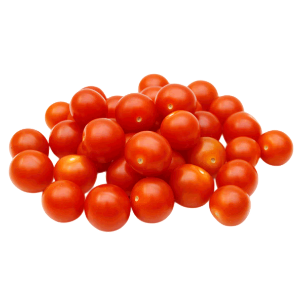 Organic red round cherry tomatoes offering fresh flavor and firm texture for everyday salads and cooking. - 250 gm