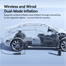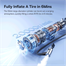 Offers both wired and wireless operation, allowing you to inflate tires using the built-in battery or by connecting to your vehicle’s power source LCD screen provides real-time pressure readings, and you can preset desired pressure levels for different applications, ensuring accurate inflation and preventing over-inflation Includes an integrated flashlight to assist during nighttime emergencies or low-light conditions
