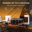 Full charge in 1 hour 80% capacity after 3000 cycles Waterproof level of battery pack: IP54 300W output, 600W surge Connectivity: Wi-Fi 2.4GHz Output interface: AC outlets × 3 USB-A × 2 USB-C DC Car Power Weight: 3.55 kg
