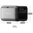 Holds up to 58 cans 330 ml soda Has a 298Wh plug-in battery that maintains items at 4° C for up to 43 hours Smart application control Dimensions (internal): 487 × 284 × 298.5 mm Weight: 20.5 kg