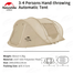 Naturehike Automatic 3-4 Person Pop Up Tent - Drops