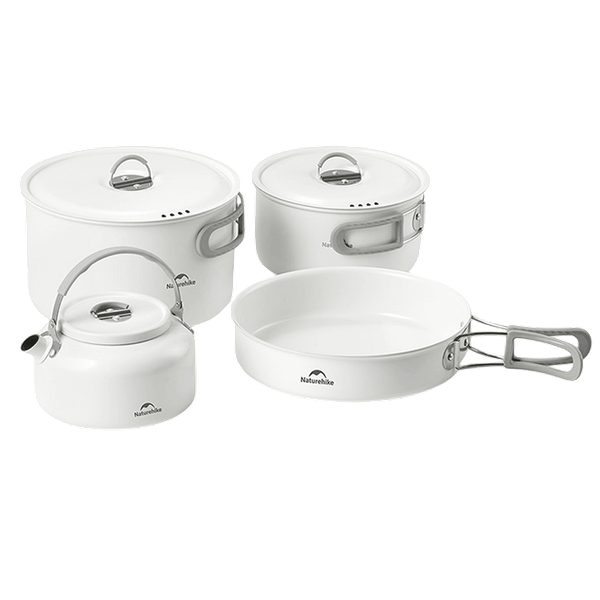 A 4-piece Naturehike ceramic non-stick pot set, durable and easy to clean, perfect for hassle-free outdoor cooking