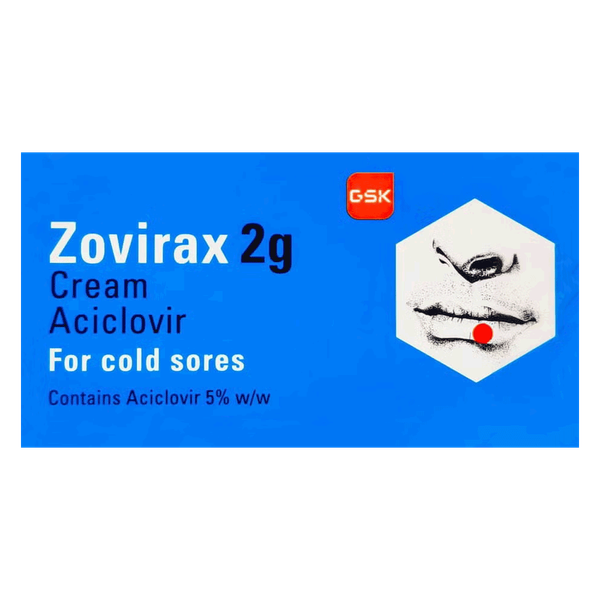 A topical antiviral cream containing 5% aciclovir, used to treat cold sores and herpes simplex infections by inhibiting virus growth - 2 gm