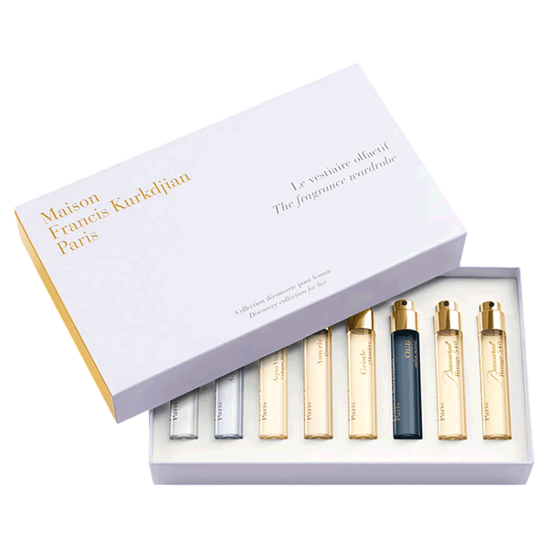 A curated set of iconic, varied fragrances offering fresh citrus, soft florals, warm amber, and woody accords for a versatile, elegant scent wardrobe - 8 × 11 ml